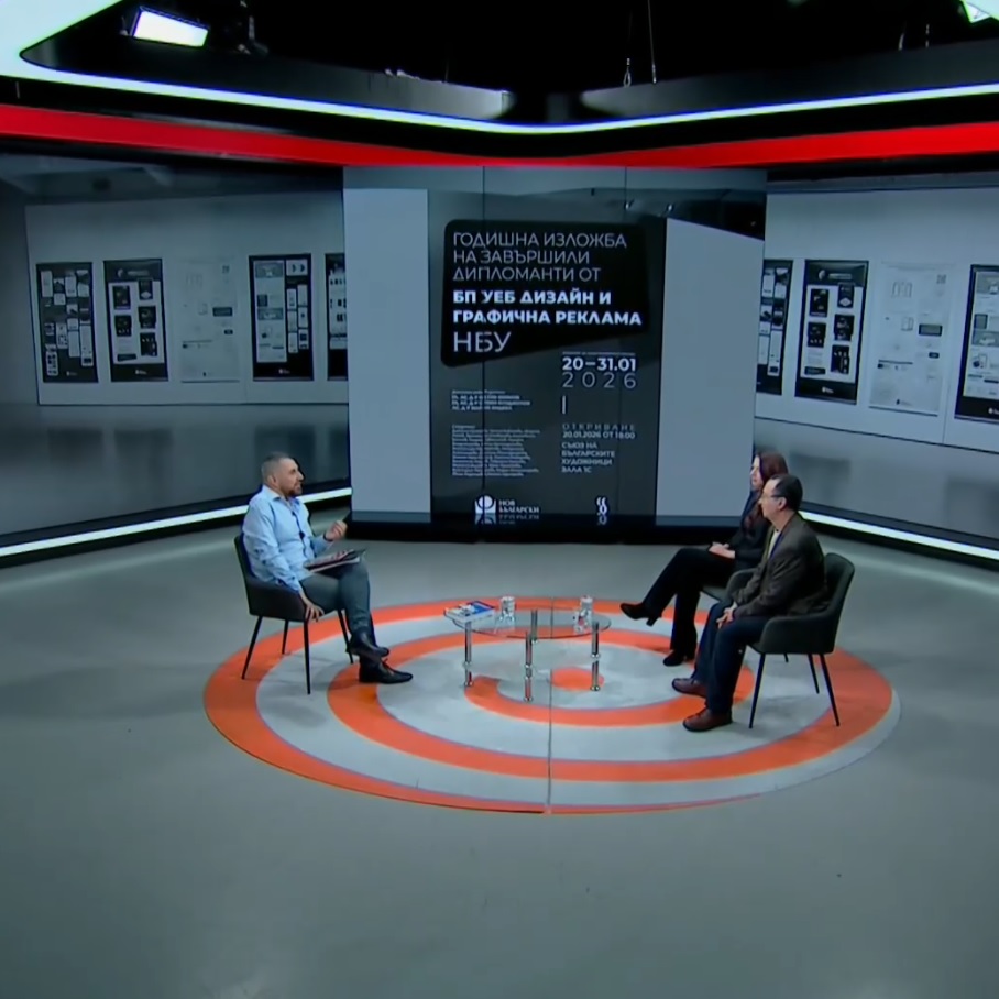 Начало Департаменти Изкуства и дизайн Актуално Актуално 26 Януари 2026 Годишна изложба на завършилите дипломанти от БП „УЕБ дизайн и графична реклама“ в НБУ БНТ (след 25:37 мин.)