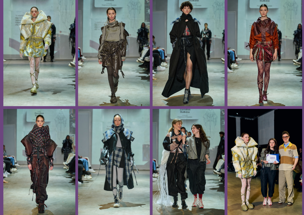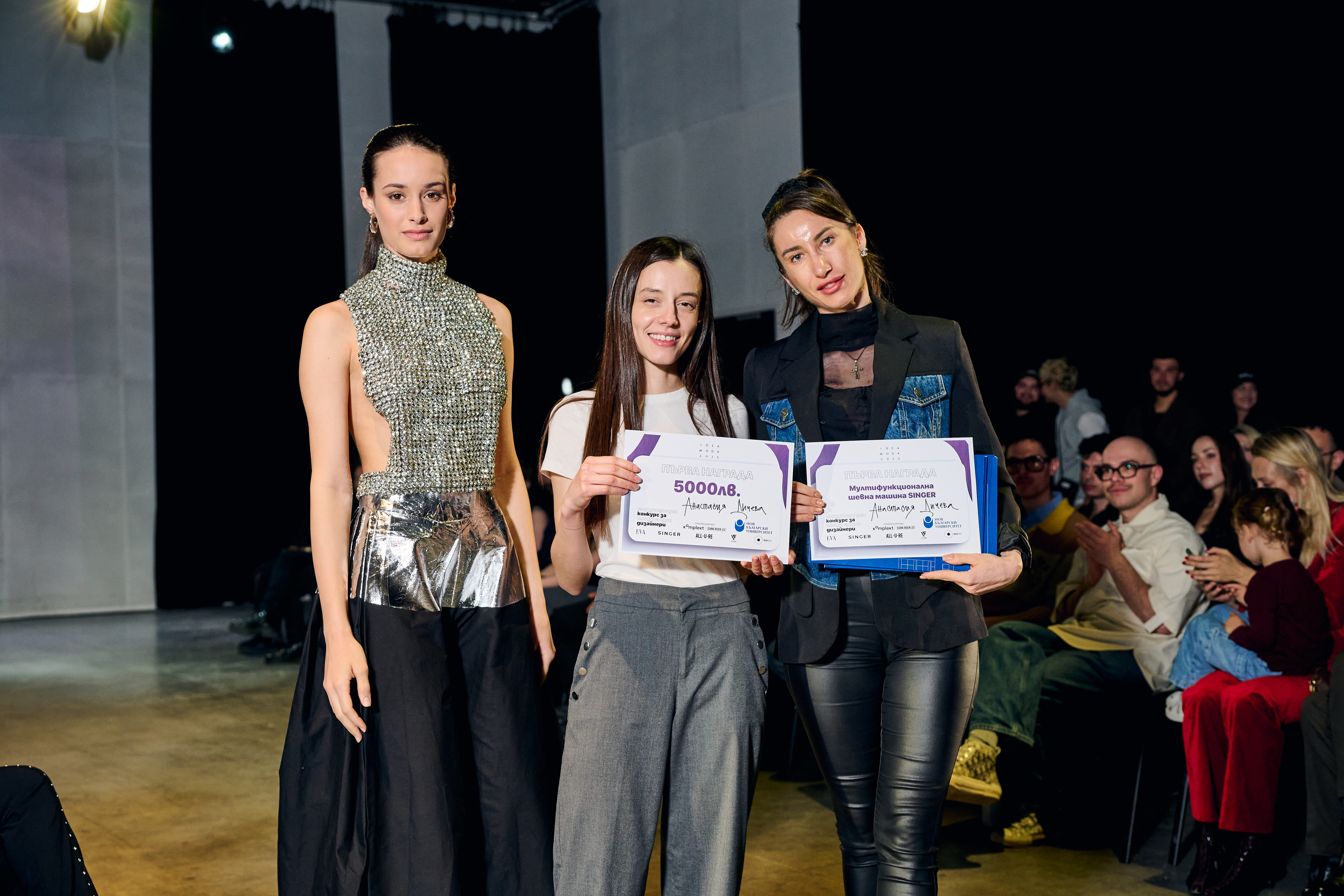 Първа награда и шевна машина Singer: Анастасия Дичева с колекция SEMIOTICS OF THE SPIRIT – текстилна метафора за трансформацията между материята и духа, вдъхновена от философията на езика и съвременното изкуство.