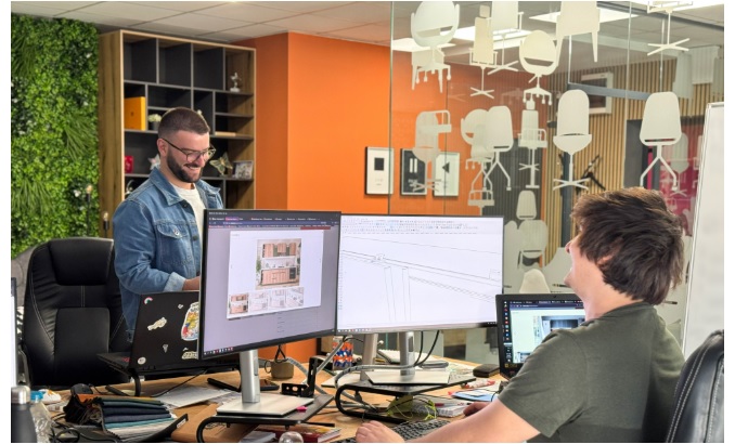 Статията представя Климент и Тома от отдел „Проекти и процеси“ на „Мебели Виденов“, завършили „Пространствен дизайн“ в Нов български университет