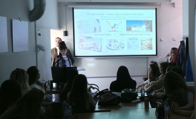 Лекцията бе част от образователната програма на департамент „Изкуства и дизайн“, на нея присъстват студенти от специалностите „Интериорен дизайн“ и „Архитектура“
