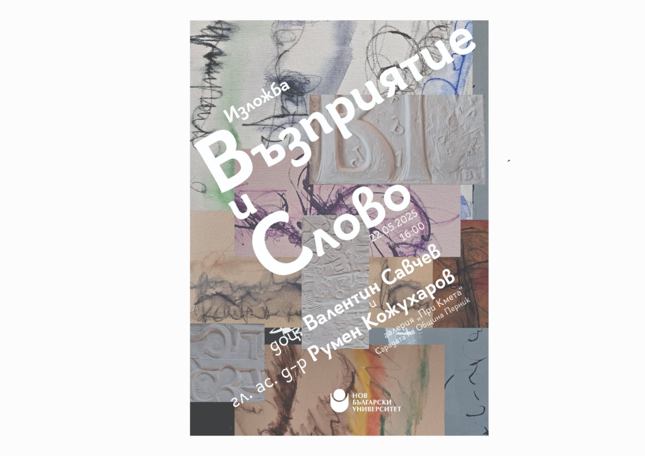 В галерия „При кмета“ в сградата на Община Перник се е състоял вернисаж на изложба „Възприятие и слово“ на доц. Валентин Савчев и гл. ас. д-р Румен Кожухаров от Нов български университет