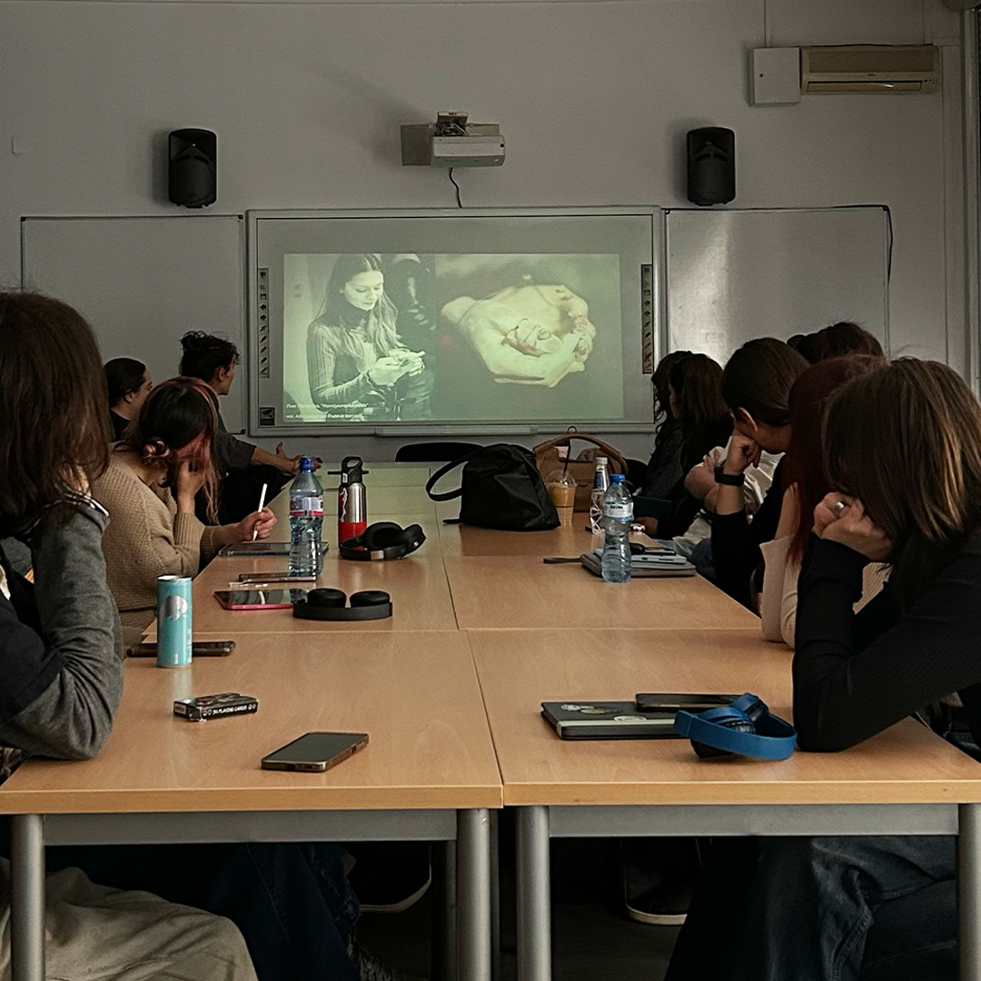 Артистката Биляна Токмакчиева и кураторът Нана Мелконянц представиха независимата платформа за съвременно изкуство The Artist at Play (TAAP) по покана на ас. д-р Ивайло Саралийски. В рамките на срещата те запознаха студентите с мисията на платформата да подкрепя следващото поколение творци и да разширява границите на българската арт сцена.